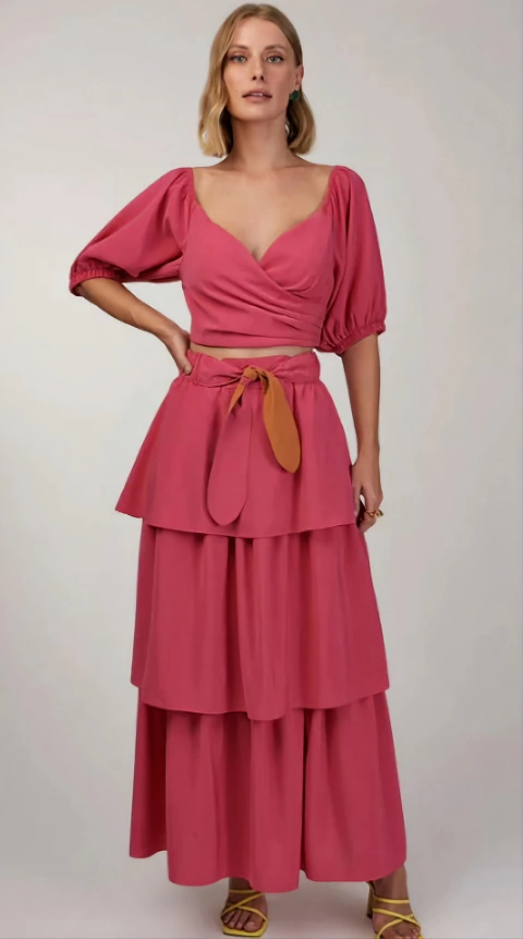 Apresentamos a Saia Midi Godê da Maria Valentina, uma peça indispensável no seu guarda-roupa. Com um charmoso detalhe em amarração e na vibrante cor pink, esta saia é confeccionada em uma mistura de viscose e poliéster, garantindo conforto e leveza. Ideal para compor looks elegantes e versáteis, ela se adapta perfeitamente a diversas ocasiões.